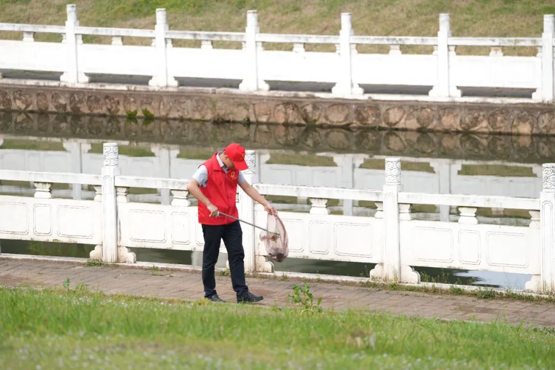 鶯初解語,最是一年春好處,室內活動結束后,大家來到圭塘河畔開展“文明實踐我行動 德潤雨花志愿紅”圭塘河環境整治大行動,以實際行動傳遞“奉獻、友愛、互助、進步”的志愿精神。活動開始前學習了《推動綠色發展,促進人與自然和諧共生》,宣讀了《黨員發揮先鋒模范作用助推圭塘河流域水環境綜合整治倡議書》,之后全體成員沿著圭塘河水域拾撿沿線生活垃圾。站在人與自然和諧共生的高度來謀劃經濟社會發展,向著美麗中國目標不斷邁進。